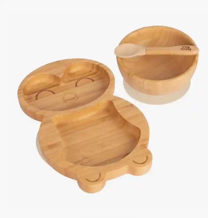 La gamme Tiny Dining d’assiettes à ventouses en bambou pour enfants est la solution idéale pour les repas des enfants en pleine découverte. La ventouse (technologie d’aspiration “Stay-Put) en silicone garantit que l’assiette reste bien fixée à la table, à l’abri des petites mains agitées.