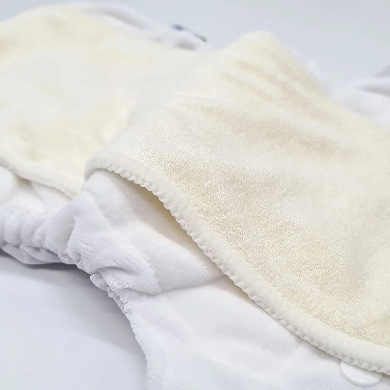A l’intérieur de la couche de naissance, on peut ajoute des parties absorbantes, appelées Inserts. Les inserts “Boosters” fournis avec la couche de naissance sont en bambou et coton.