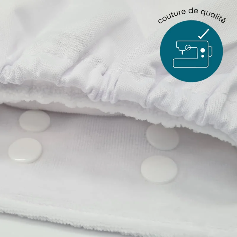 La partie extérieure de la couche lavable de naissance est conçue en PUL, un tissu respirant et imperméable.