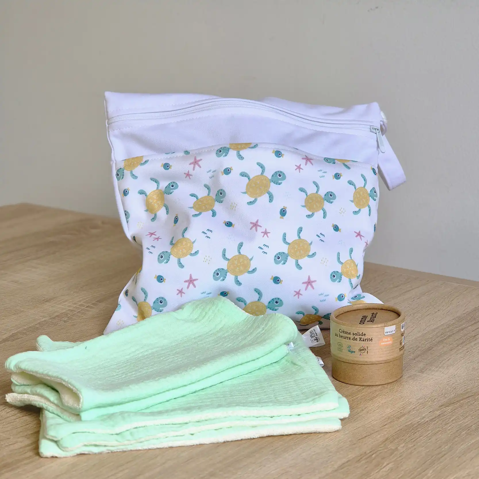 Le kit nounou débarbouillette ultra pratique et efficace, à déposer à votre assistante maternelle le matin. Un kit zéro déchet qui promet un respect de la peau délicate de votre bébé à l’infini.
