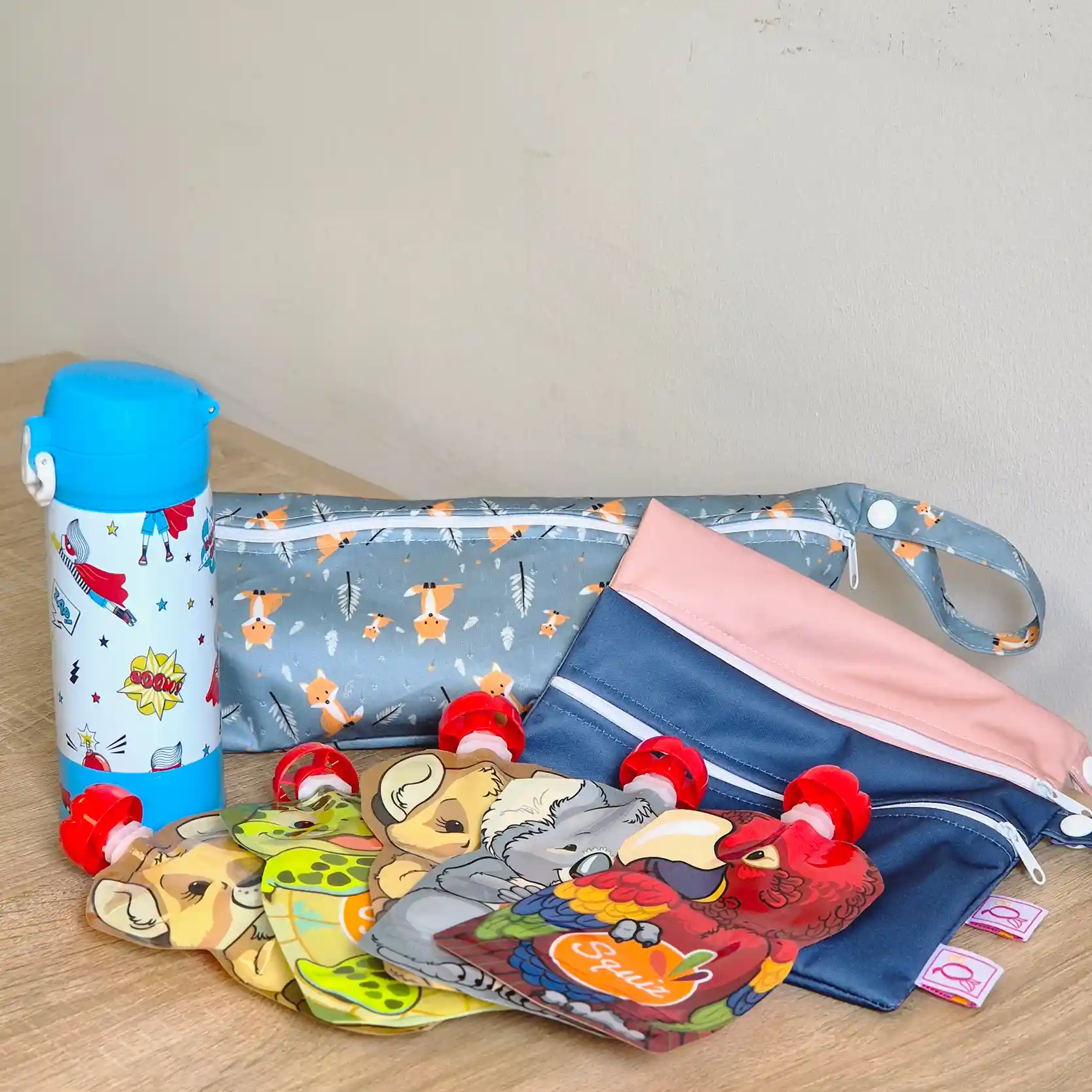Parce qu’apprendre à devenir autonome, c’est aussi savoir bien s’organiser dès le plus jeune âge, ce kit malin accompagne les enfants du CP au CM2 pour un goûter sain, zéro déchet et sans risque de casse tout au long de la semaine. Pratique, robuste et durable, il est parfait pour la vie à l’école.