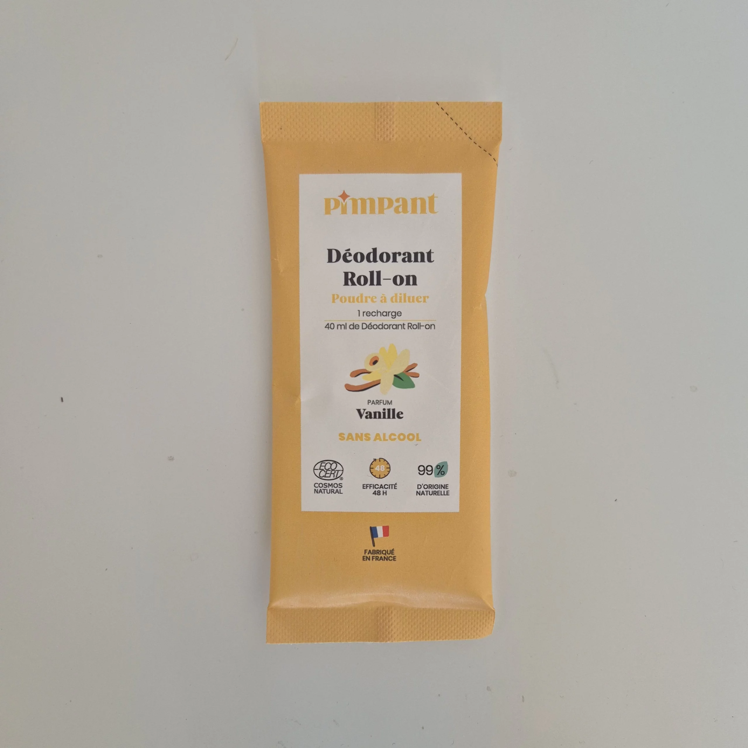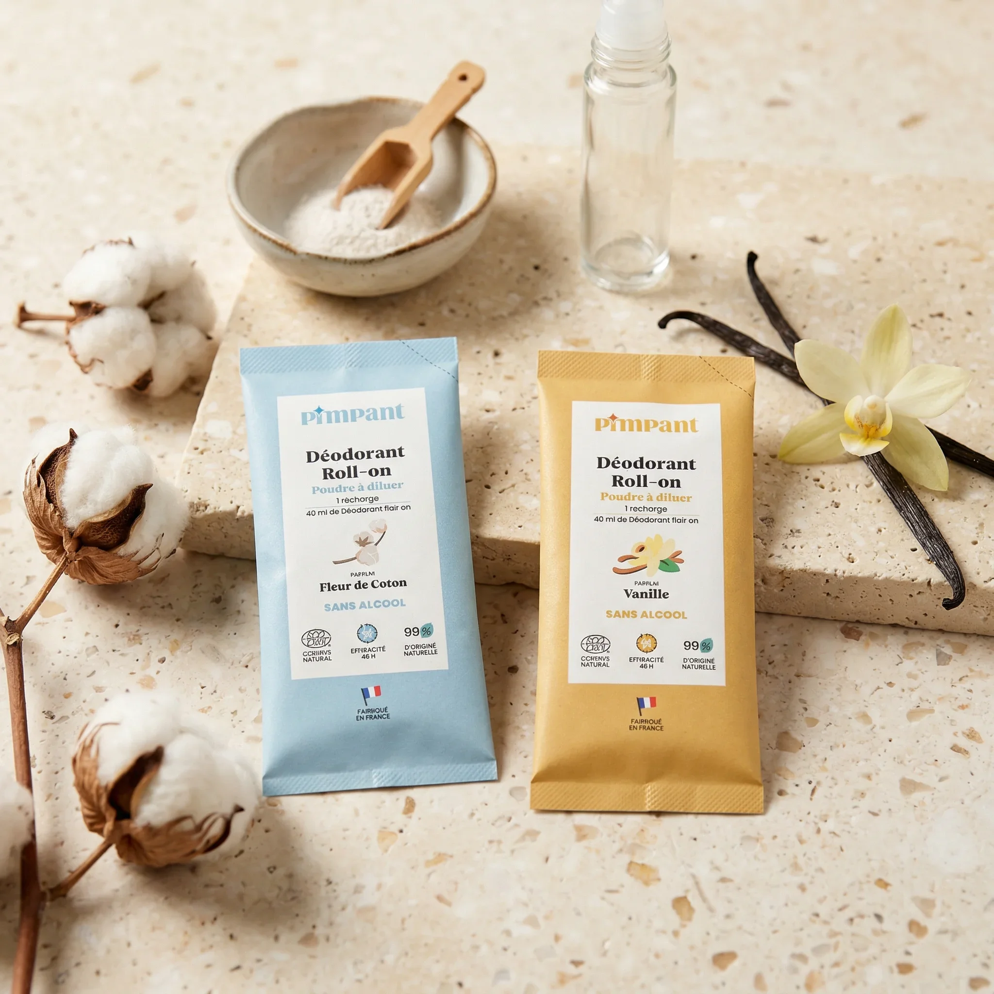 Une fois que vous avez le déodorant roll-on de la marque Pimpant, vous pouvez le recharger comme vous le souhaitez grâce à des recharges.