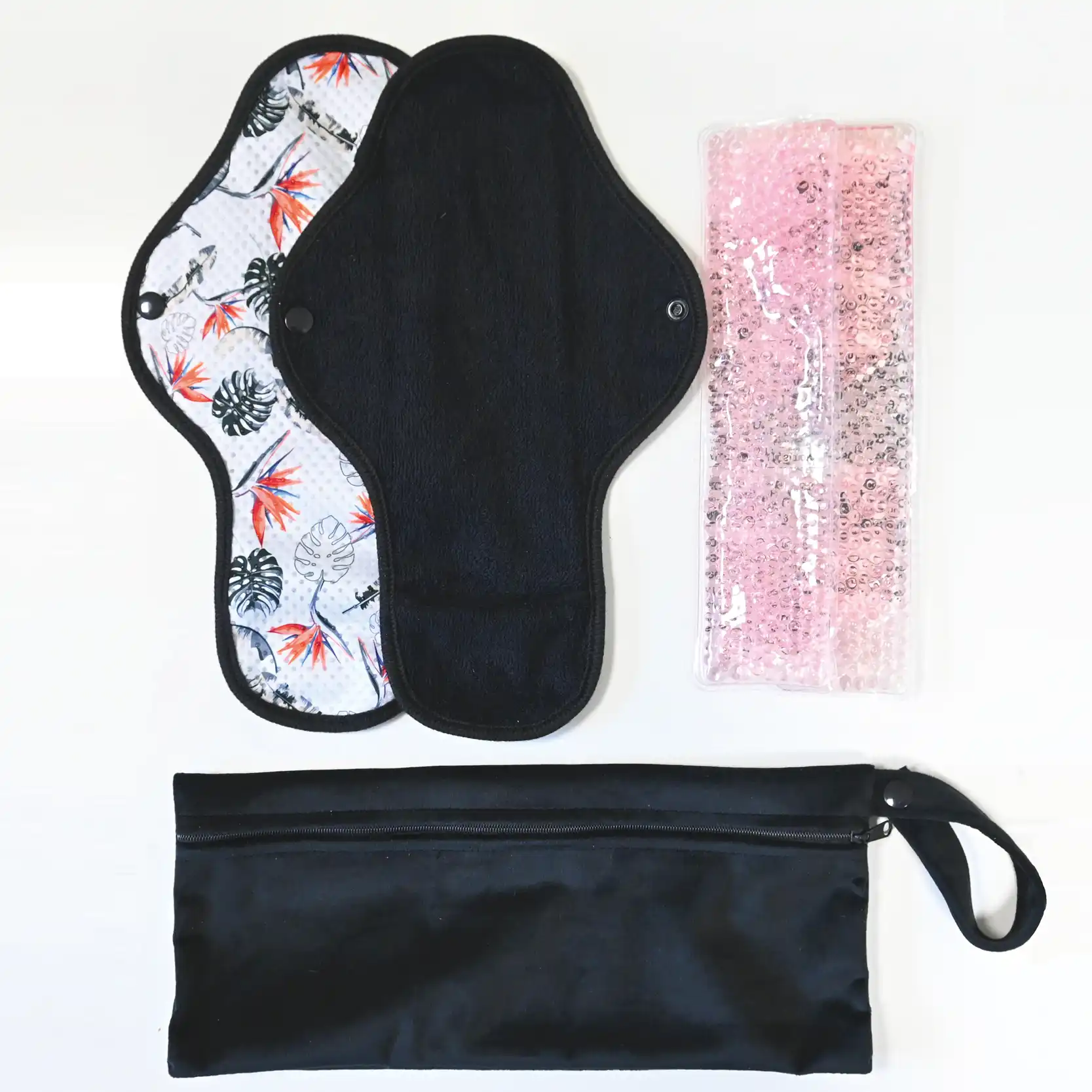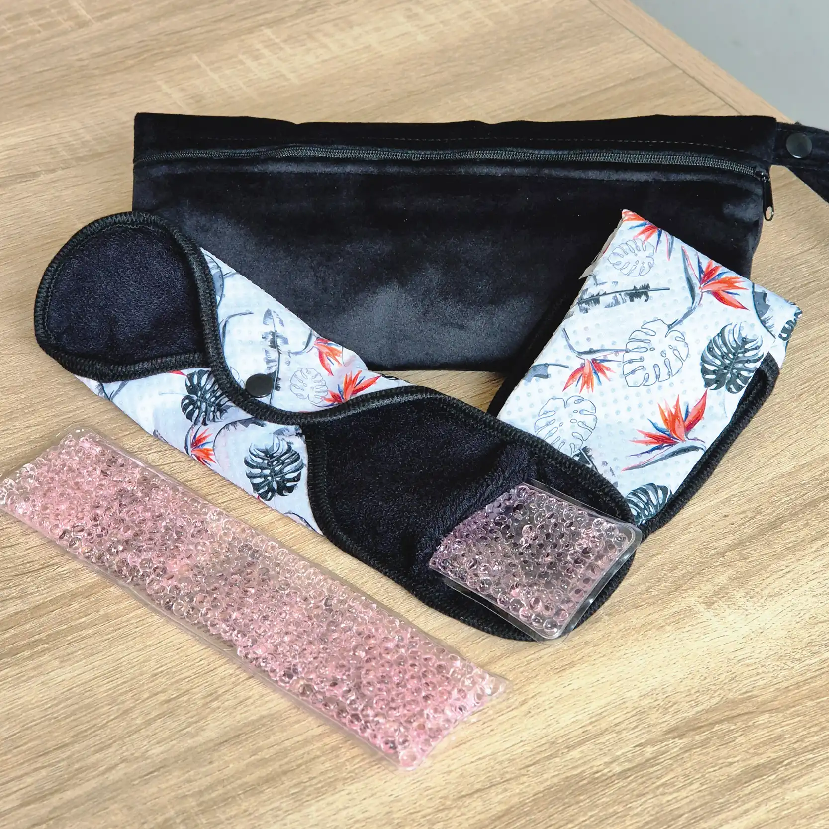 Règle douloureuse : 2 serviettes + 2 pads soulageant chaud / froid + 1 pochette